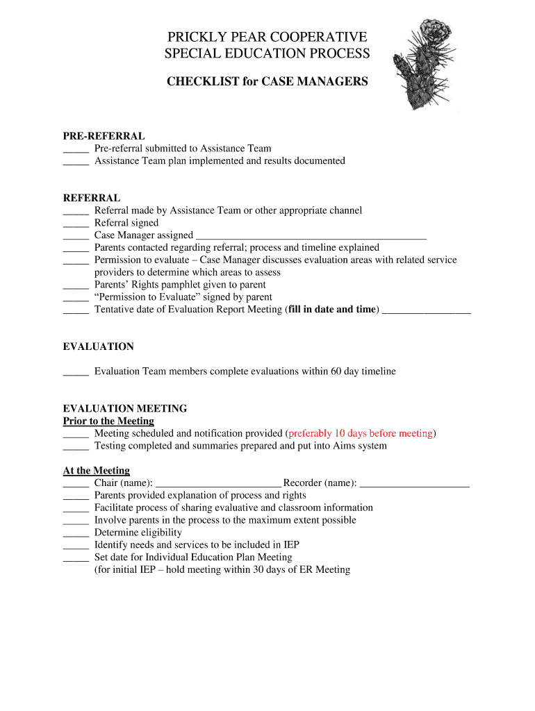 Get the free Special Education Process Checklist