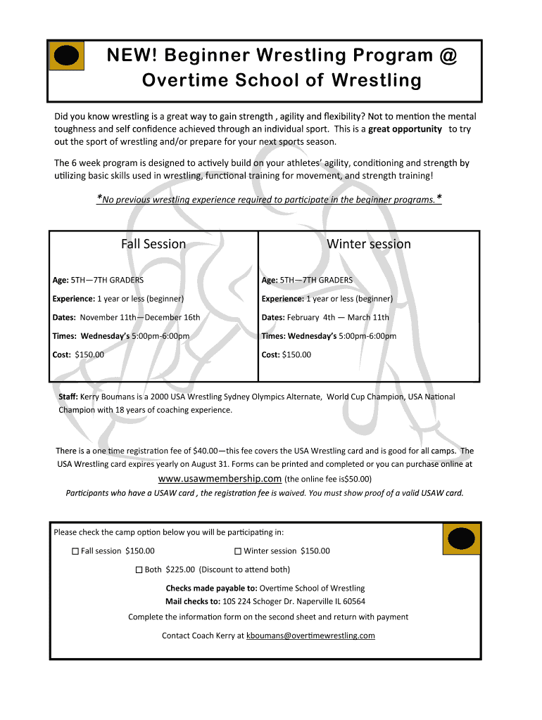 Get the free NEW! Beginner Wrestling Program Overtime School of Wrestling