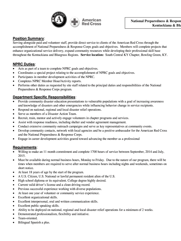 National Preparedness & Response Kentuckians & Blu Position Summary: Serving alongside paid and volunteer staff, provide direct service to clients of the American Red Cross through the accomplishment