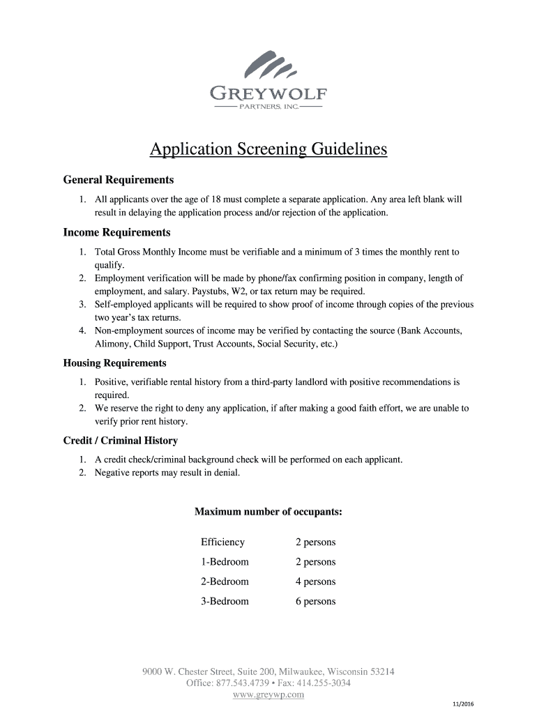 Application Screening Guidelines General Requirements 1. All applicants over the age of 18 must complete a separate application. Any area left blank will result in delaying the application process