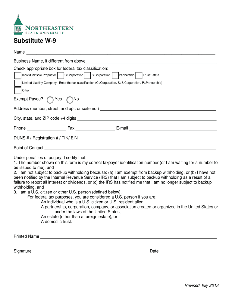 To complete the W-9 Substitute, you need to provide your name, business name (if applicable), federal tax classification, address, and your TIN. Ensure that all information is accurate to avoid IRS issues.