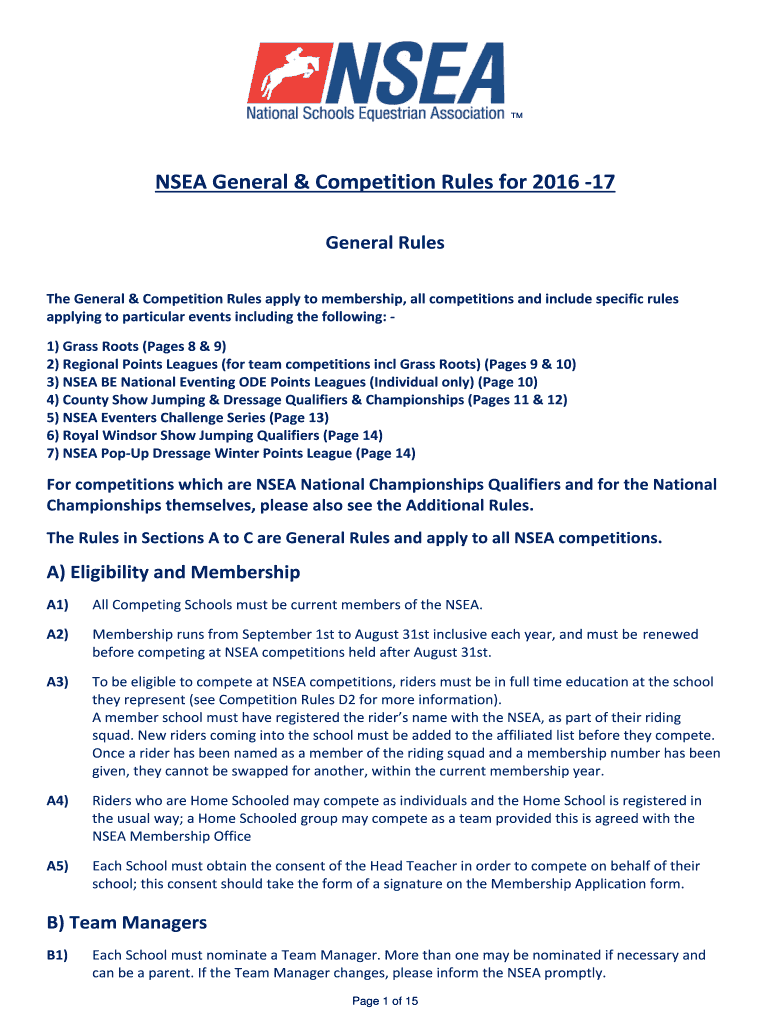 Get the free NSEAGeneral&CompetitionRulesfor201617