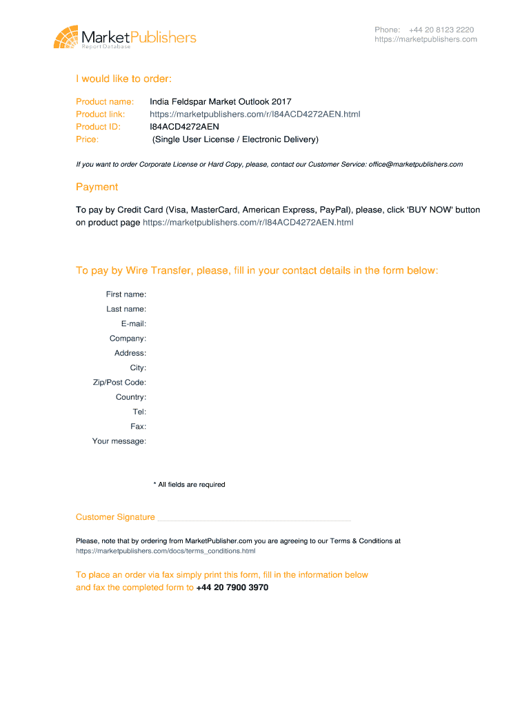 Please note that India Feldspar Market Outlook 2017 is a half ready publication ... To pay by Wire Transfer, please, fill in your contact details in the form below:.