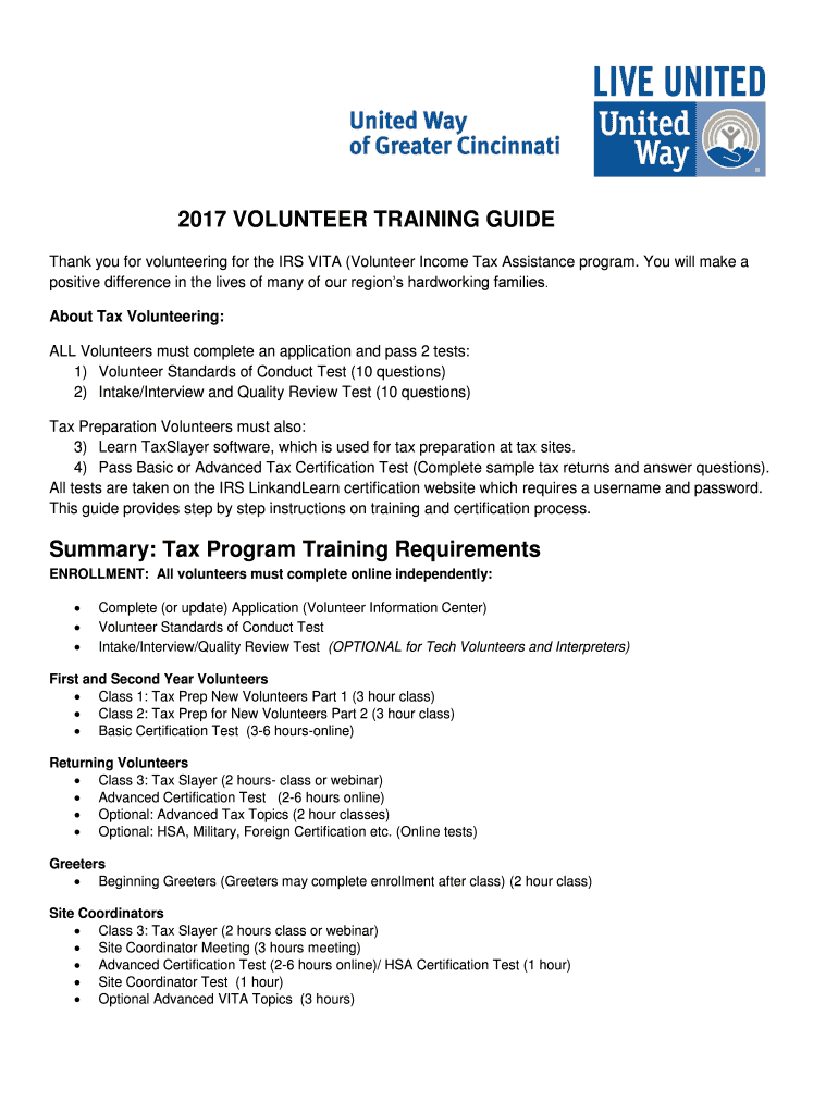 Thank you for volunteering for the IRS VITA (Volunteer Income Tax Assistance program. You will make a