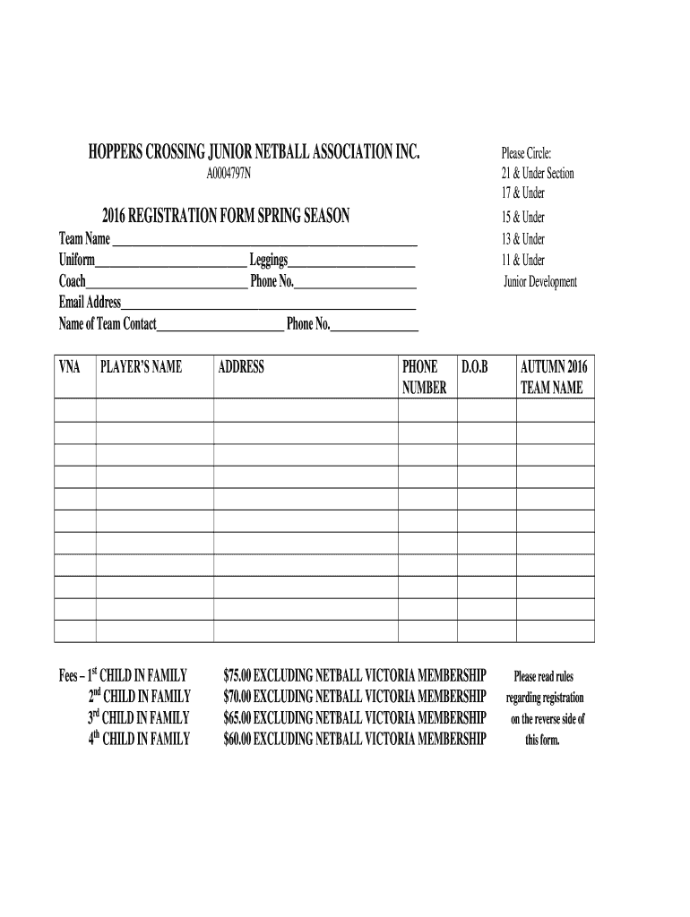Get the free HOPPERS CROSSING JUNIOR NETBALL ASSOCIATION INC. 2016 ...