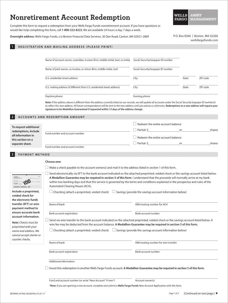 Get the free Nonretirement Account Redemption Form - Wells Fargo Funds
