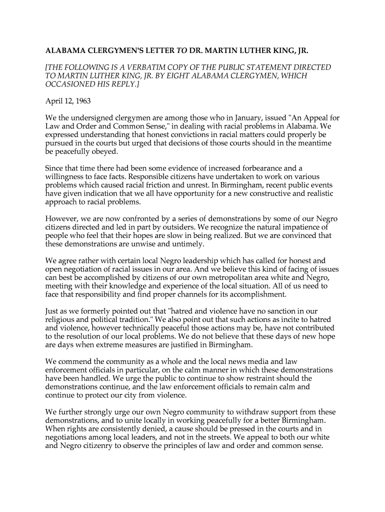 Get the free ALABAMA CLERGYMEN'S LETTER TO DR