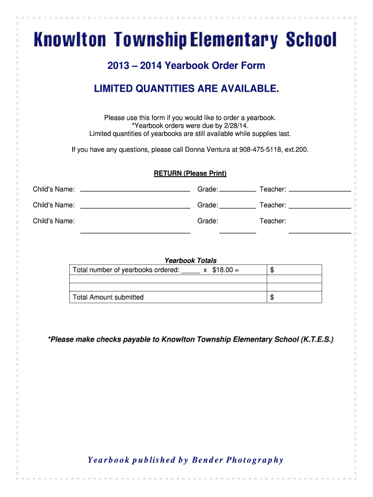 2013 2014 Yearbook Order Form LIMITED QUANTITIES ARE AVAILABLE. Please use this form if you would like to order a yearbook. *Yearbook orders were due by 2/28/14. Limited quantities of yearbooks are