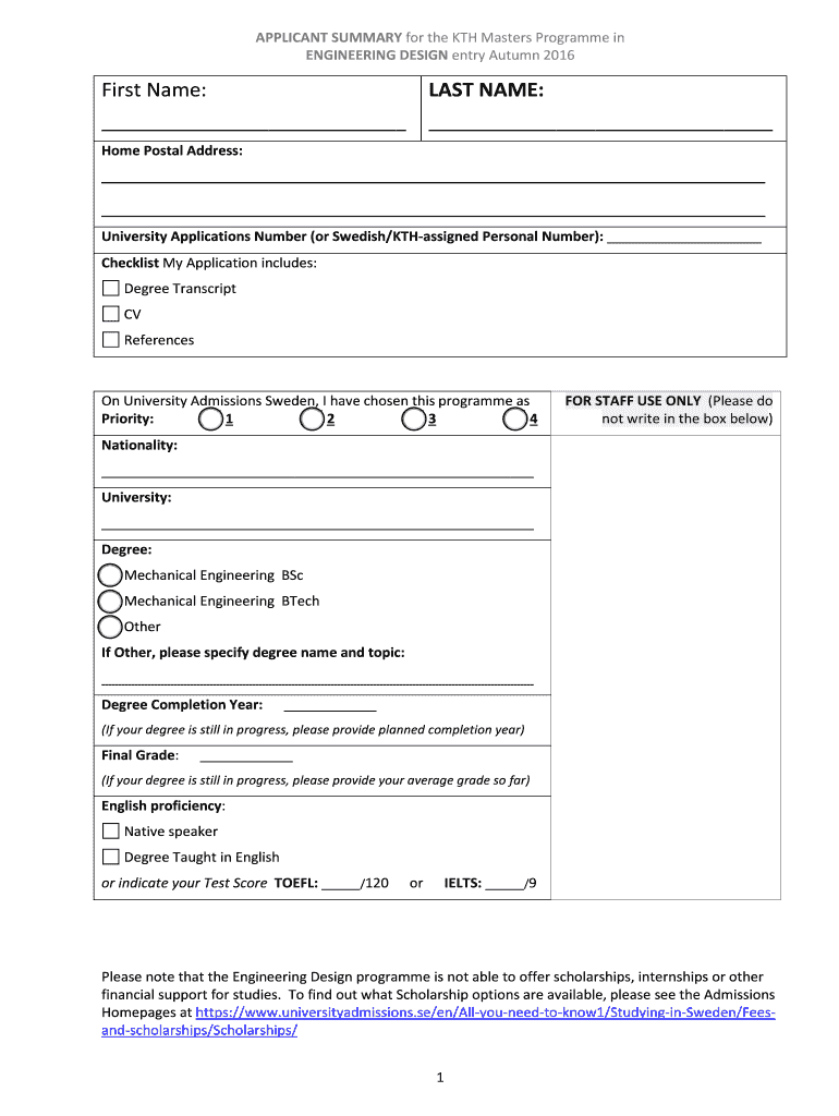 ENGINEERING DESIGN entry Autumn 2016. 2. TRACK SELECTION: Please specify the program track you wish to apply for: Internal Combustion Engines.