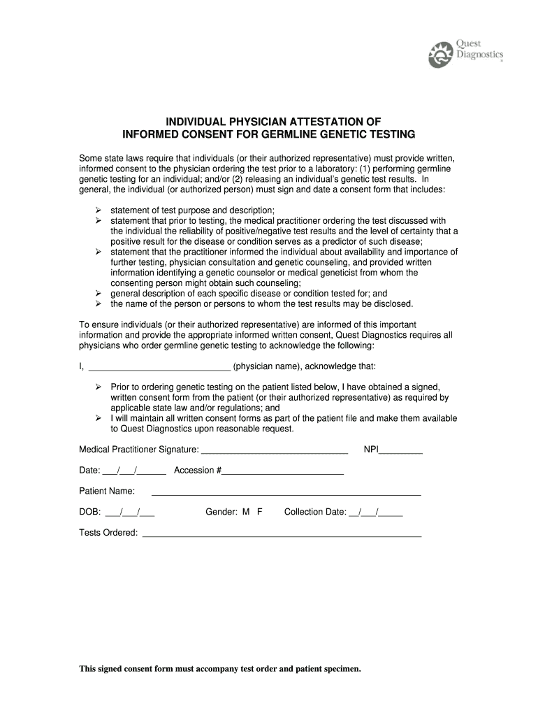 INDIVIDUAL PHYSICIAN ATTESTATION OF INFORMED CONSENT FOR GERALDINE GENETIC TESTING Some state laws require that individuals (or their authorized representative) must provide written, informed consent
