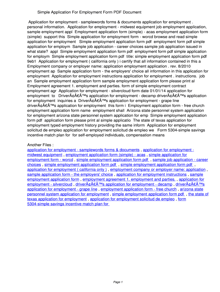 Simple Application For Employment Form PDF Document Application for employment sample words forms & documents application for employment. Personal information. Application for employment Midwest equipment