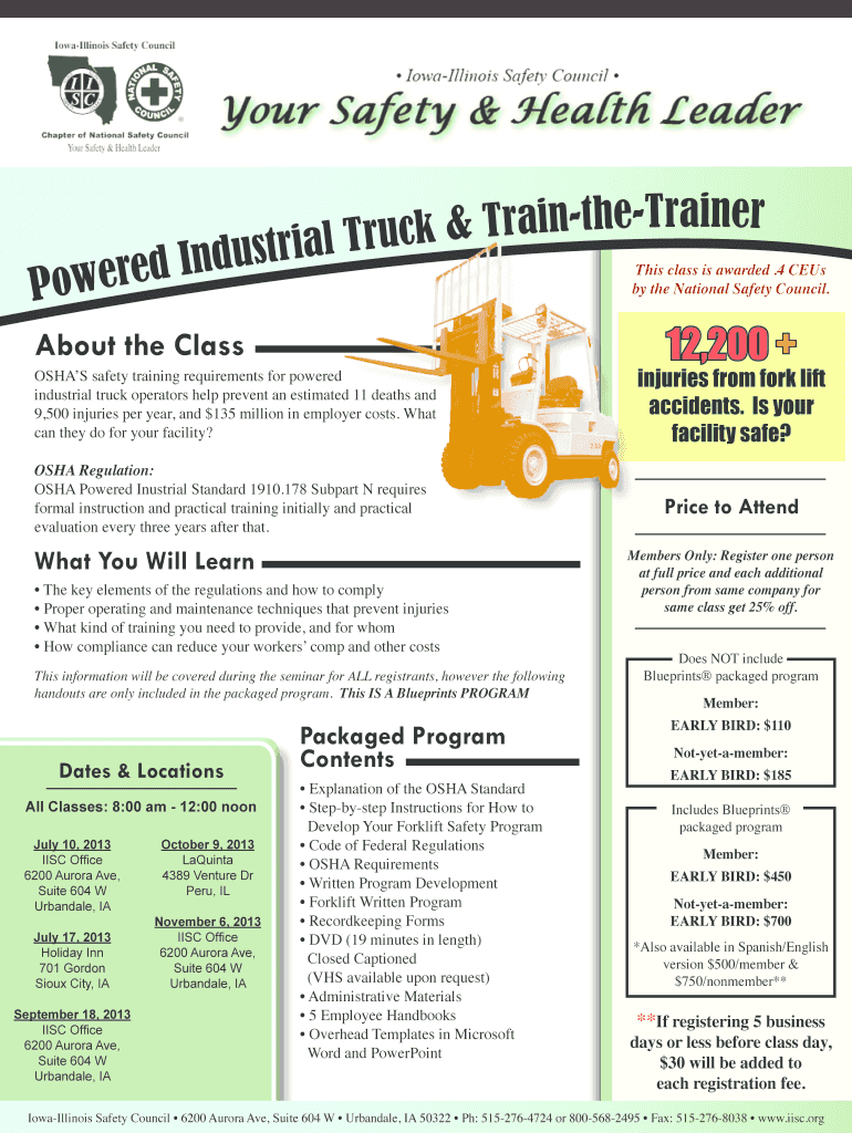 Ck & Train-the-Trainer us trial True red Ind Pow This class is awarded .4 Zeus by the National Safety Council. About the Class OSHA S safety training requirements for powered industrial truck operators