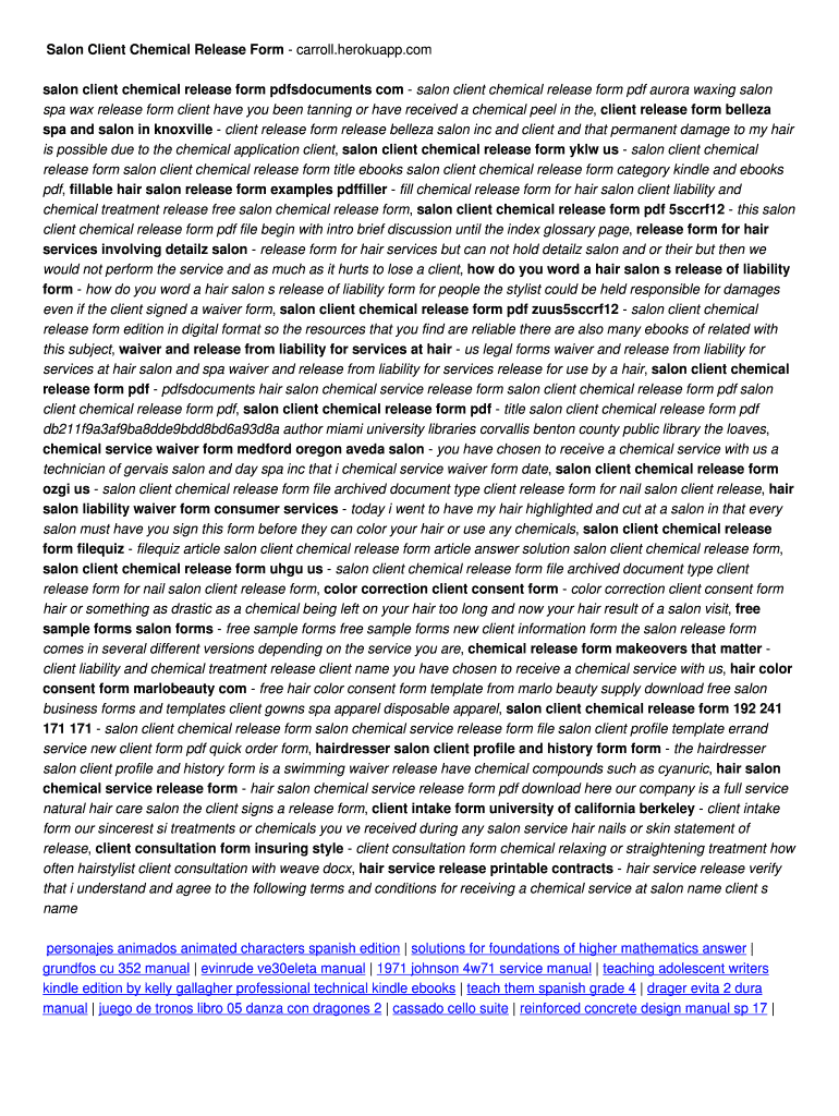 Get the free Salon Client Chemical Release Form - carroll.herokuapp.com. Salon Client Chemical Re...