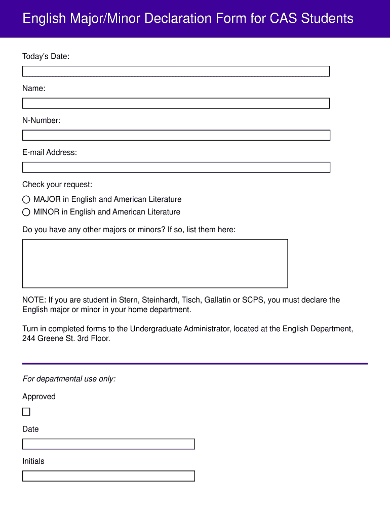 Get the free English Major/Minor Declaration Form for CAS Students - NYU English - english fas nyu