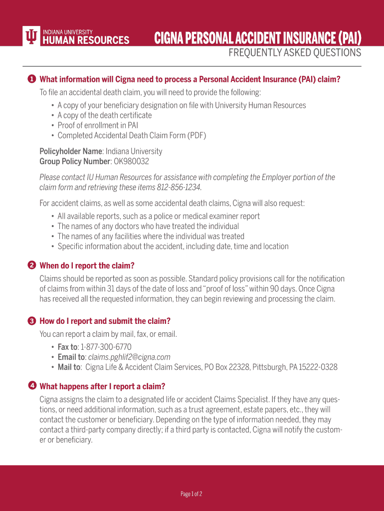 Get the free CIGNA PERSONAL ACCIDENT INSURANCE (PAI)