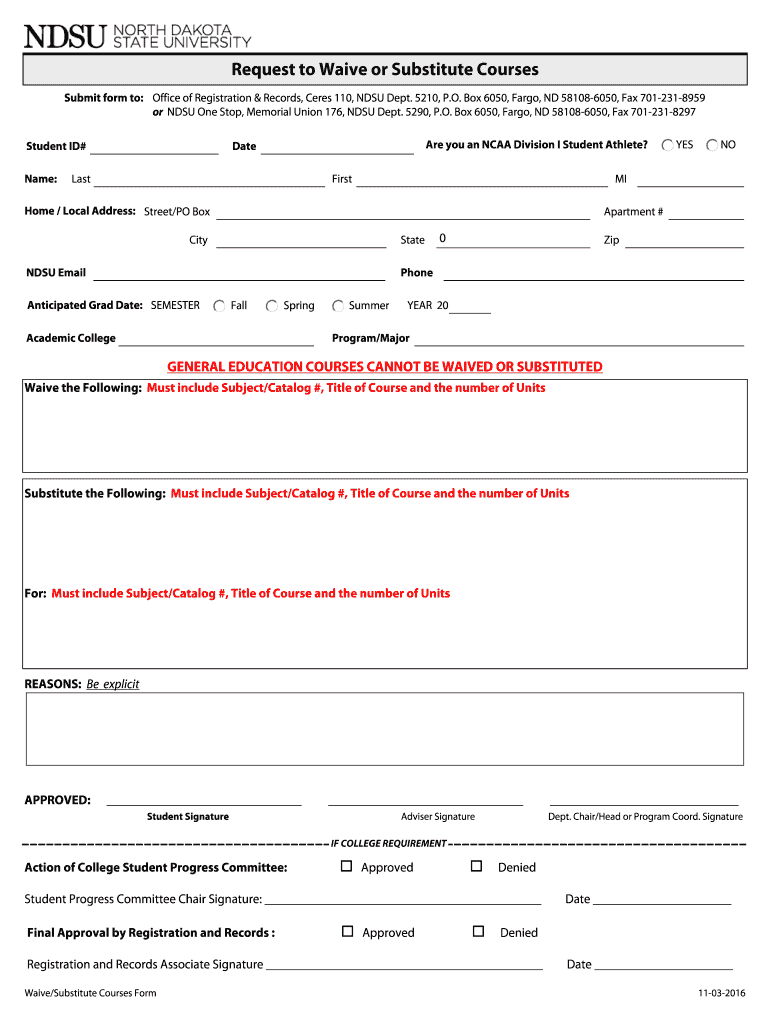 Get the free NDSU Request to Waive or Substitute Courses - ndsu