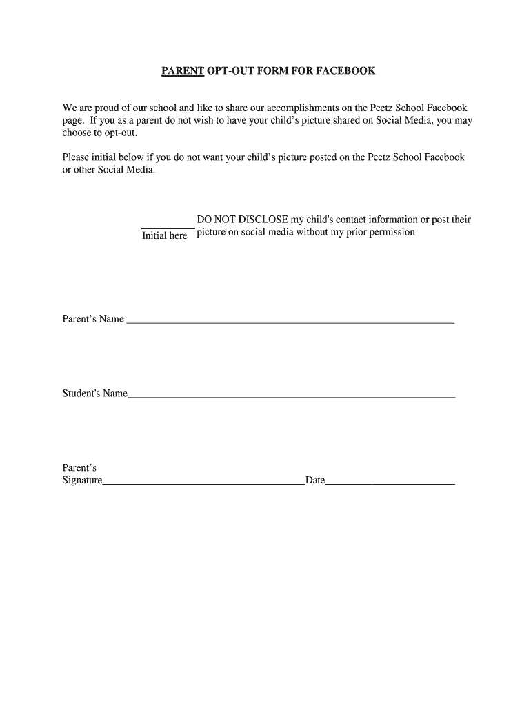 PARENT OPT-OUT FORM FOR Facebook are proud of our school and like to share our accomplishments on the Meet School Facebook