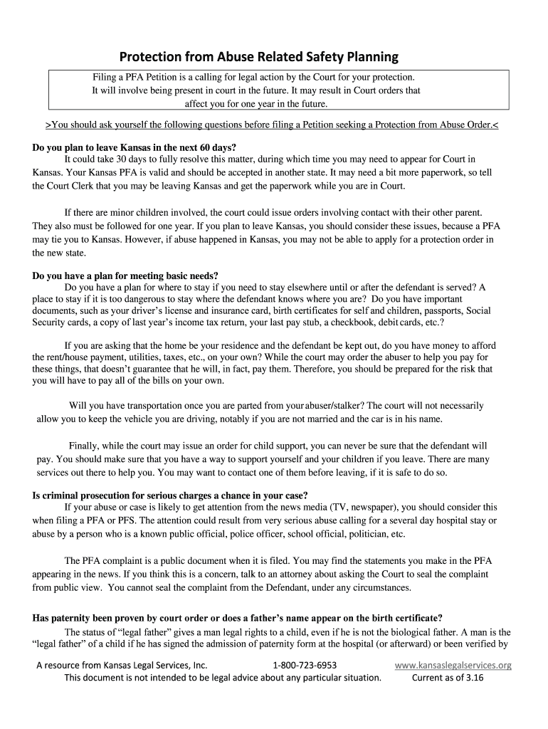 Get the free Protection from Abuse Related Safety Planning