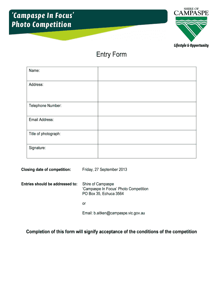 Get the free 2013 Campaspe in Focus Photo Competition entry form - Shire of ... - campaspe vic gov