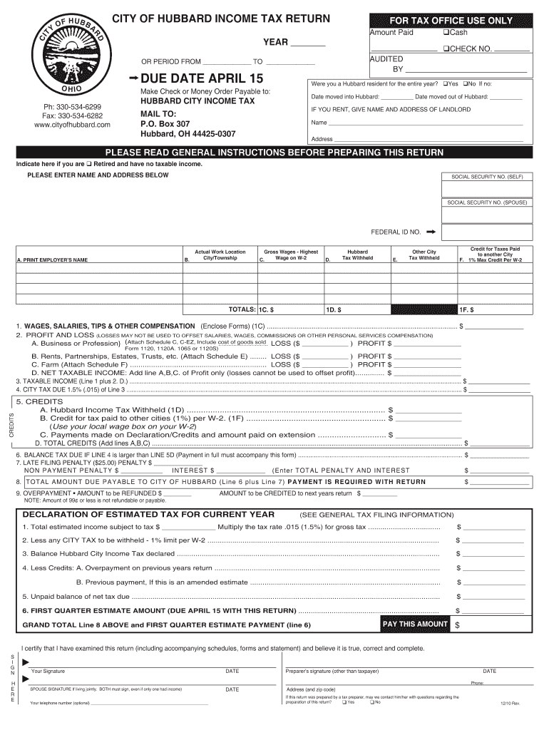 What common mistakes should I avoid while filling out the Hubbard Income Tax Return?