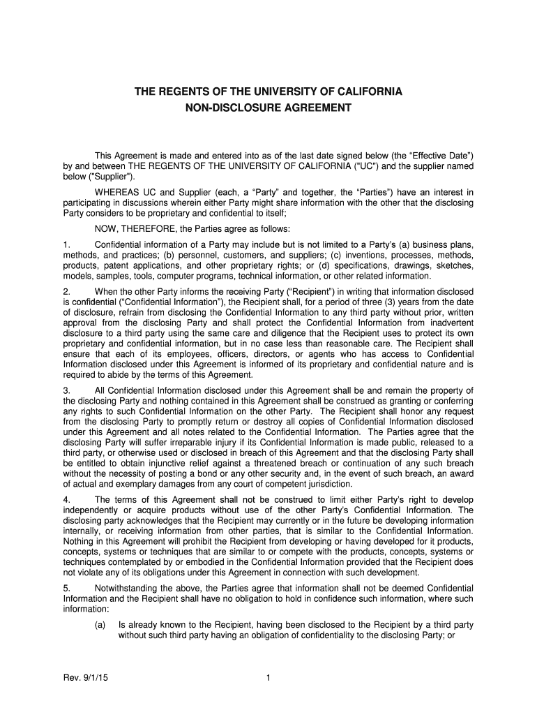 Get the free Non-Disclosure Agreement - Supplier revised 09-01-15 PDF - ucop