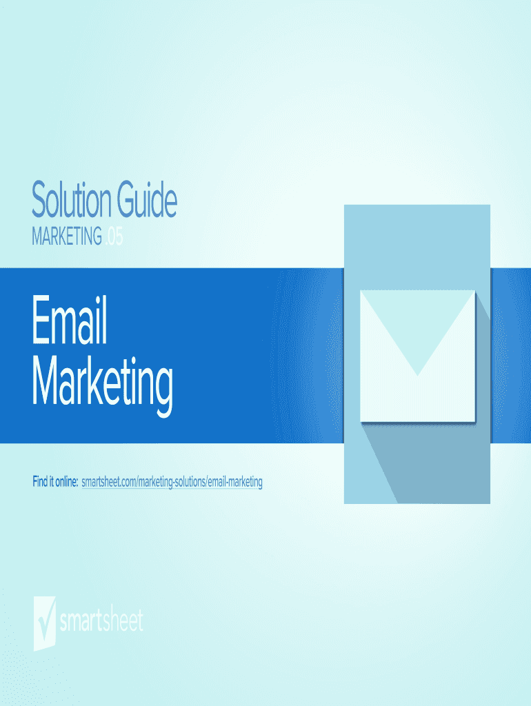 Solution Guide MARKETING .05 Email Marketing Find it online: smartsheet.com/marketingsolutions/emailmarketing About Email Marketing demands extreme attention to detail to manage dozens of moving parts.