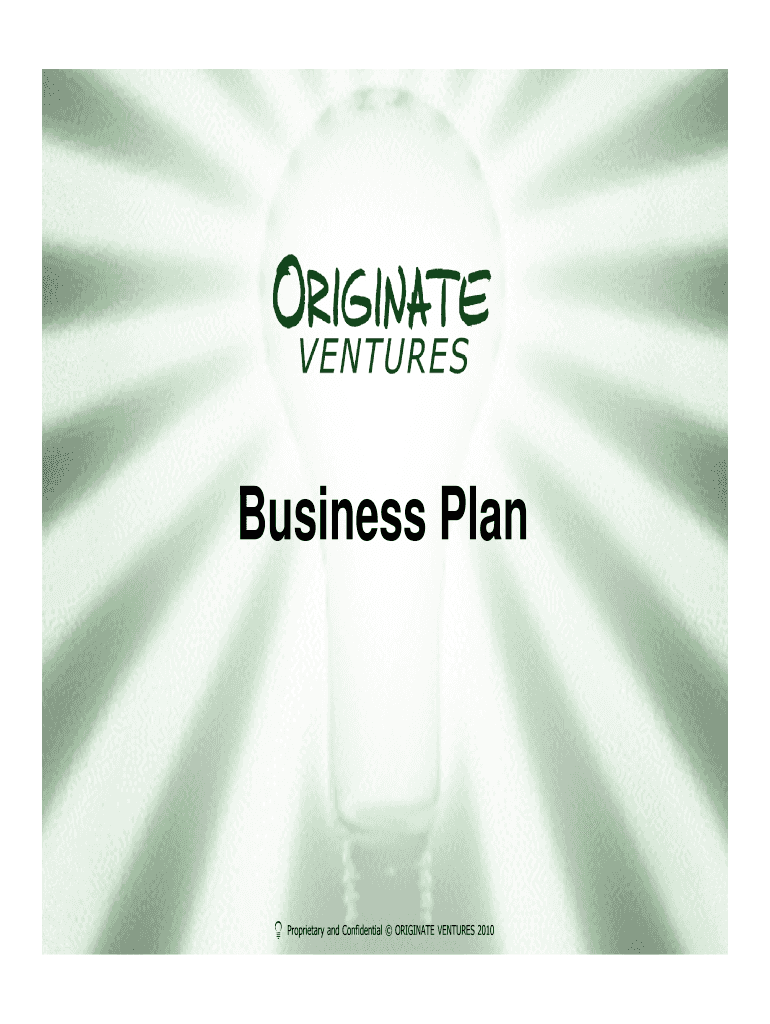 Business Plan Proprietary and Confidential ORIGINATE VENTURES 2010 Introduction Welcome! Thank you for your interest in Originate Ventures. We at Originate feel Business Plans are interactive and