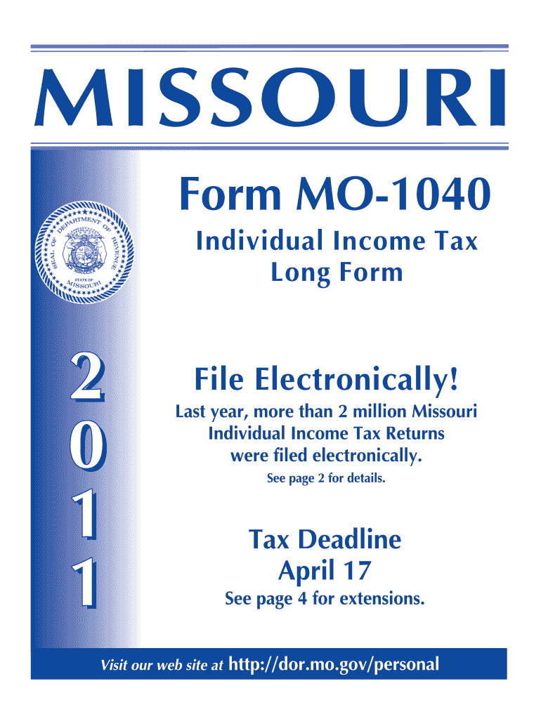 MISSOURI Form MO1040 Individual Income Tax Long Form 2 0 1 1 File Electronically! Last year, more than 2 million Missouri Individual Income Tax Returns were filed electronically. Visit our website