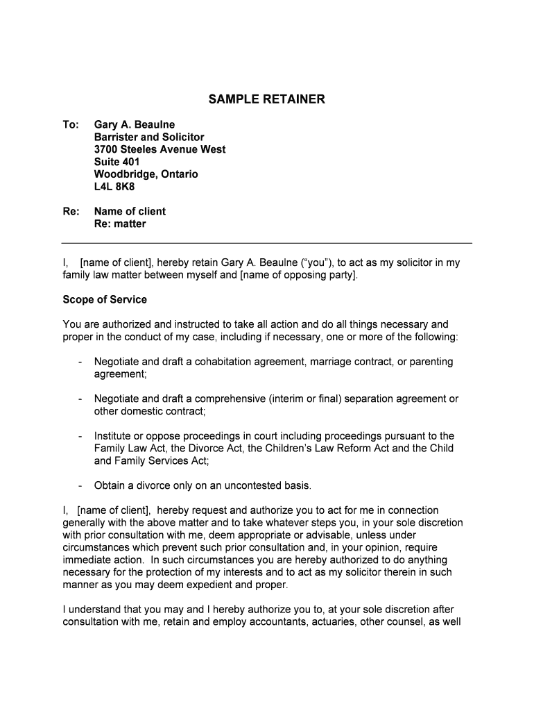Get the free sample retainer - Gary A. Beaulne, Barrister & Solicitor
