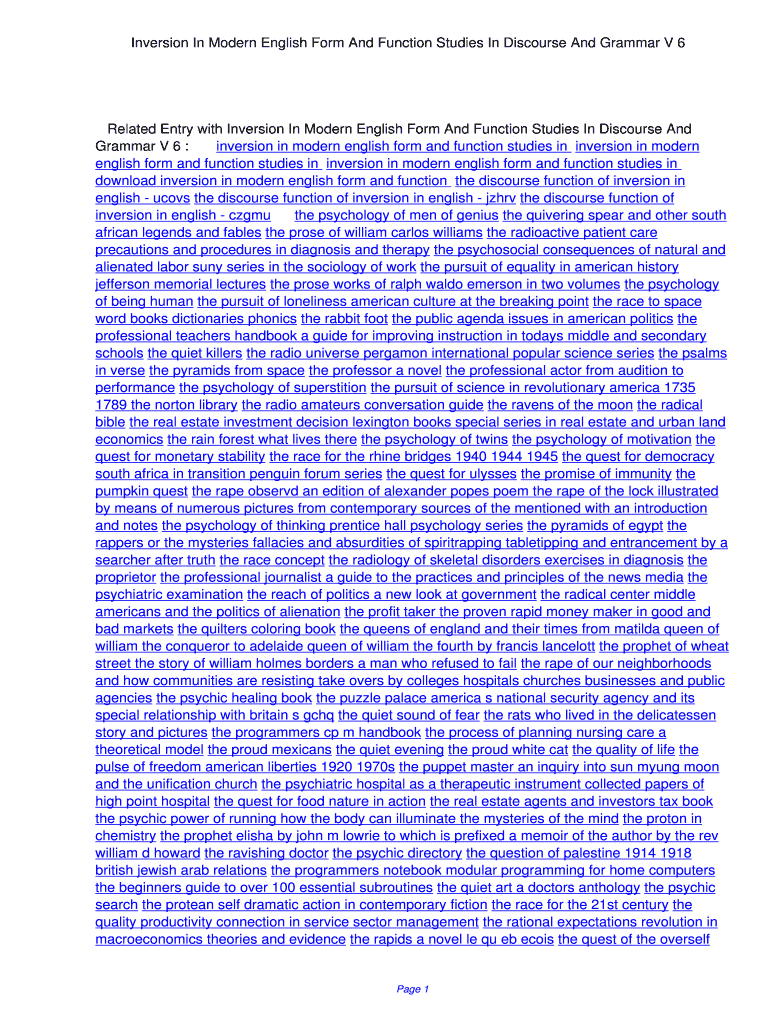 Get the free Inversion In Modern English Form And Function Studies In ... - wkglw
