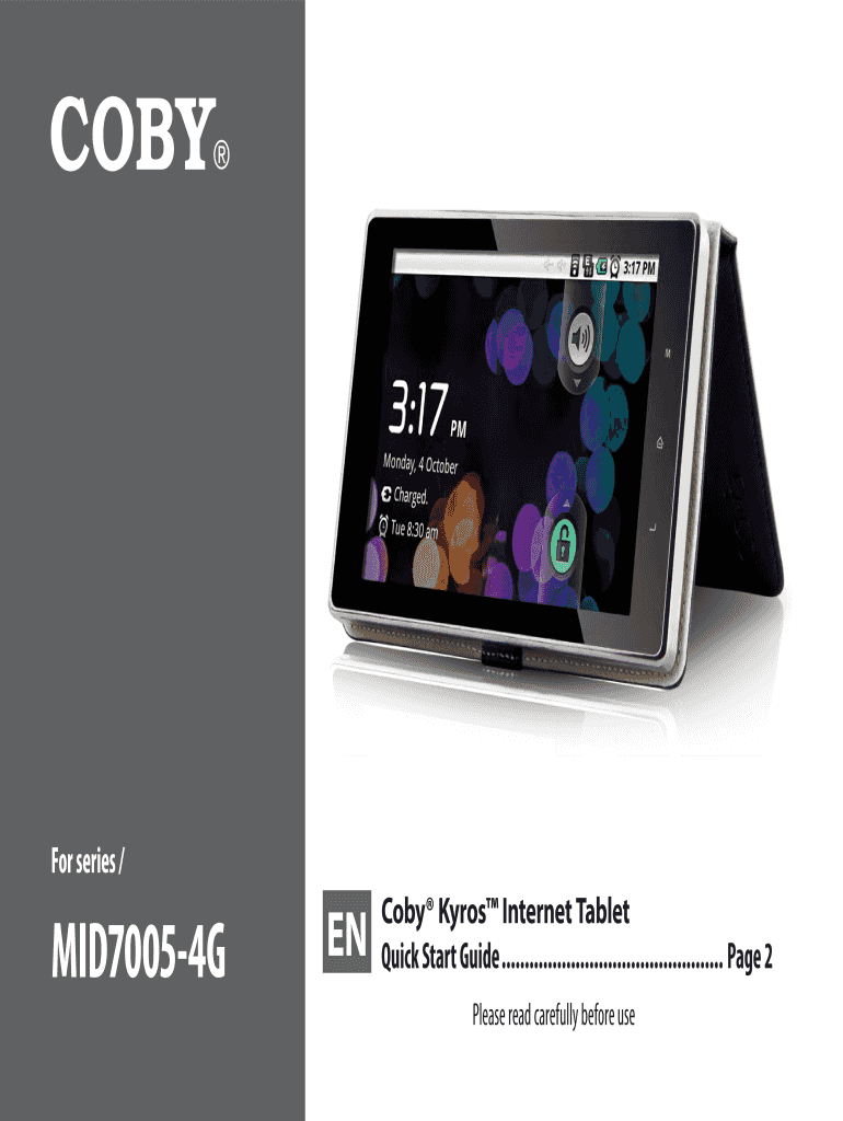For series / MID70054G EN Coby Gyros Internet Tablet Quick Start Guide................................................. Page 2 Please read carefully before use Table of Contents English, Thank You.