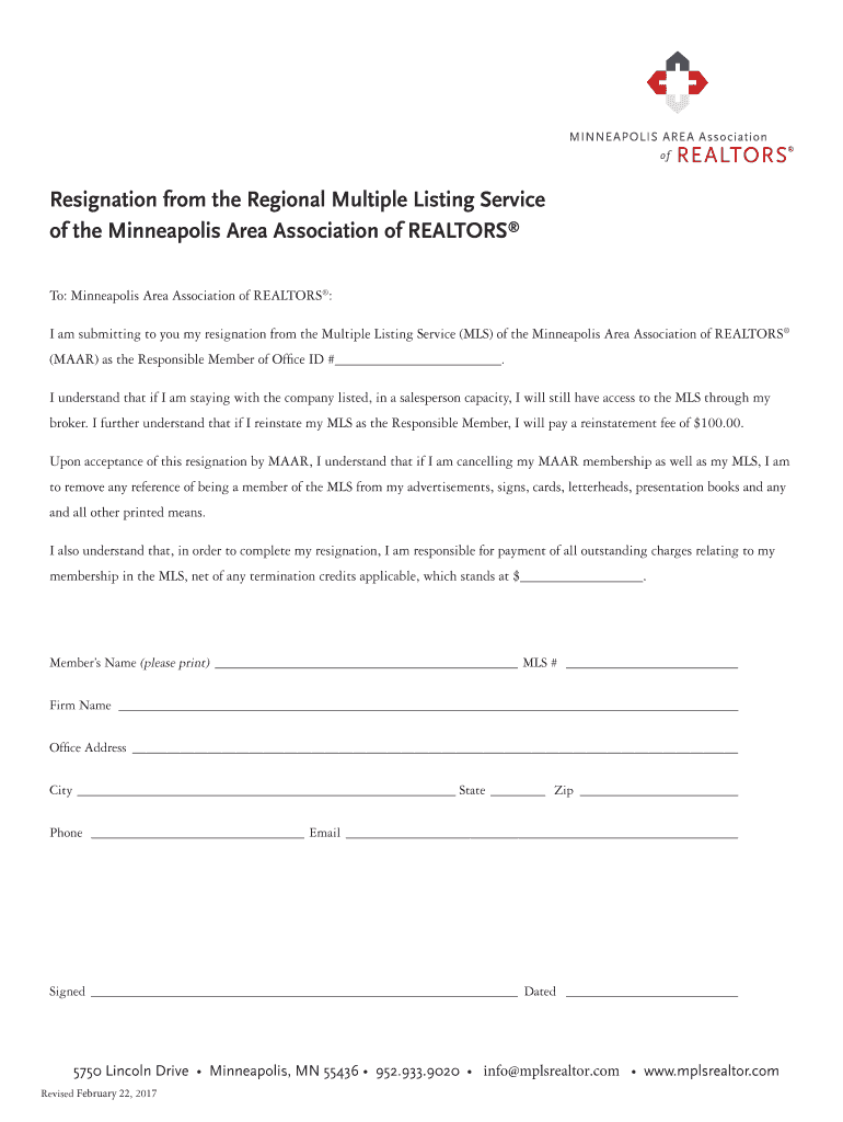 Get the free Broker MLS Resignation - Minneapolis Area Association of Realtors