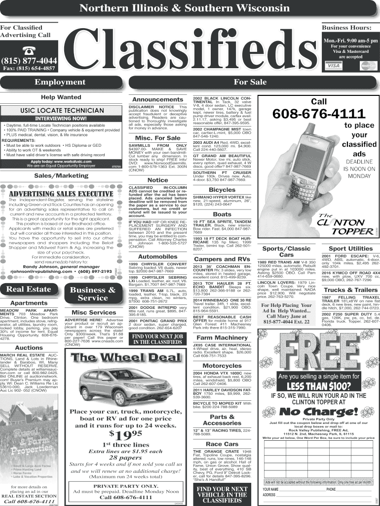 Get the free Northern Illinois & Southern Wisconsin Classifieds
