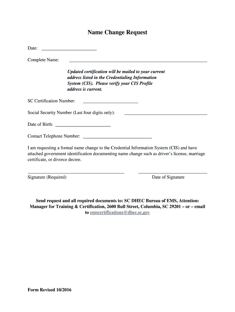 Get the free Name Change Request - The S.C. EMS Portal - scemsportal