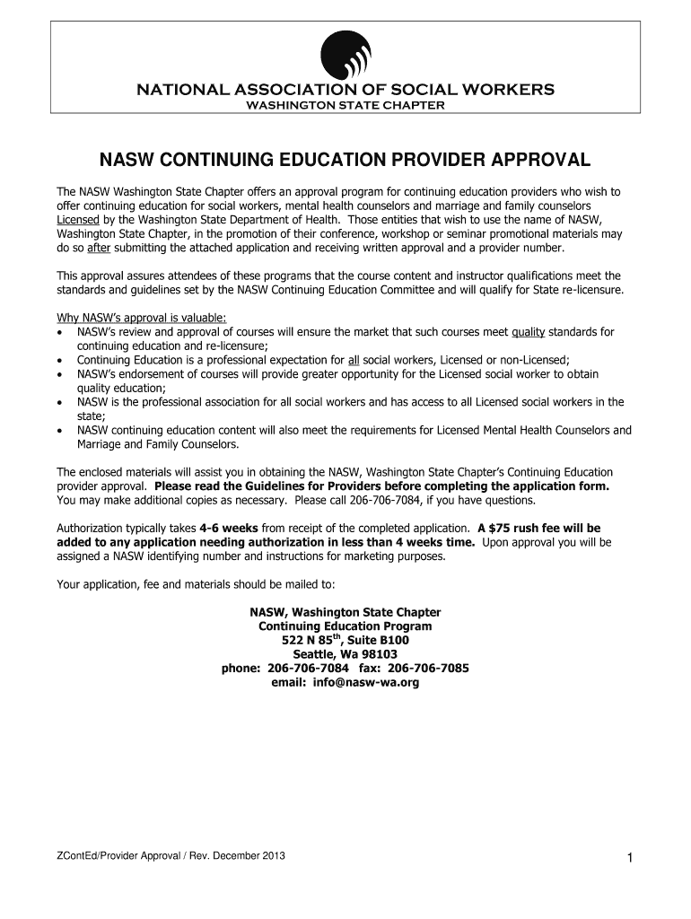 Get the free Nasw continuing education provider approval - NASW-WA - nasw-wa