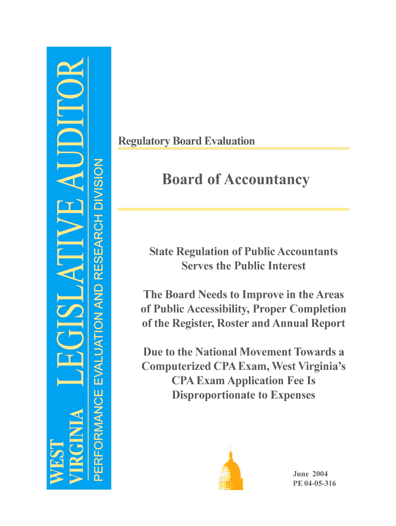 VIRGINIARegulatory Board EvaluationBoard of AccountancyState Regulation of Public Accountants
