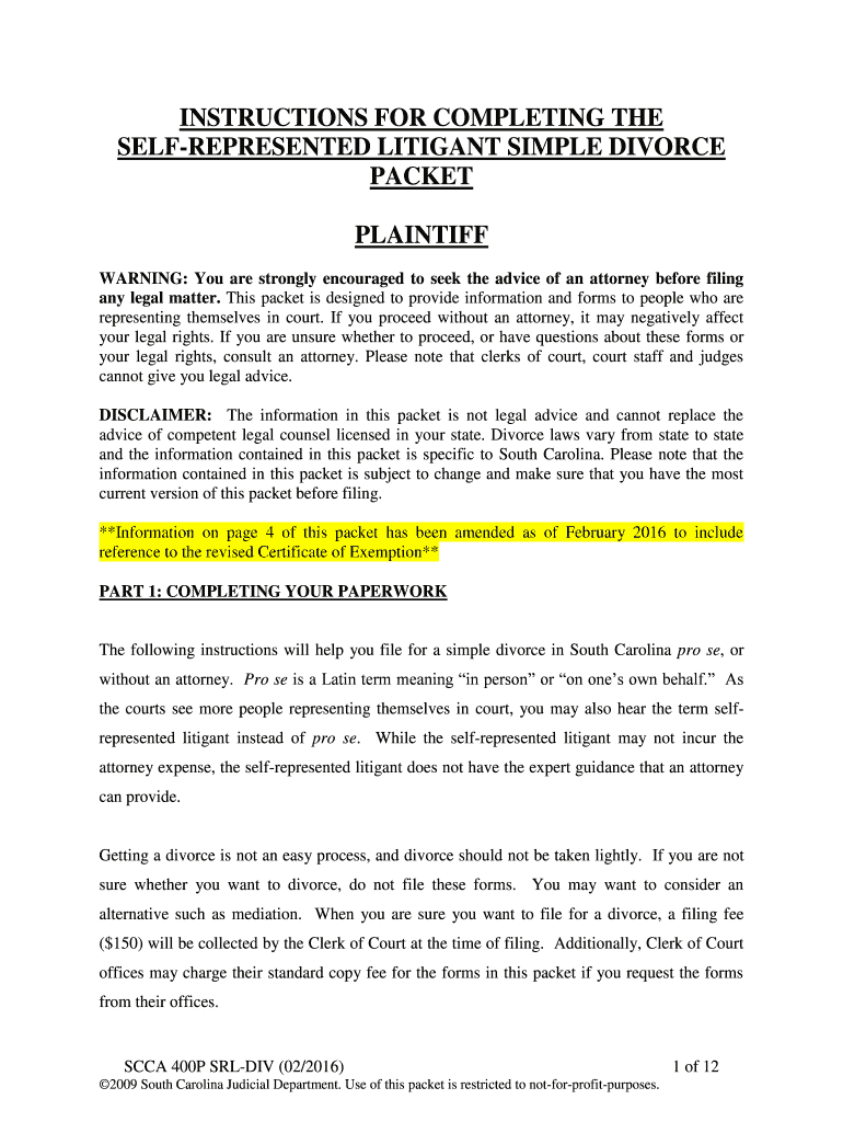 SELFREPRESENTED LITIGANT SIMPLE DIVORCE