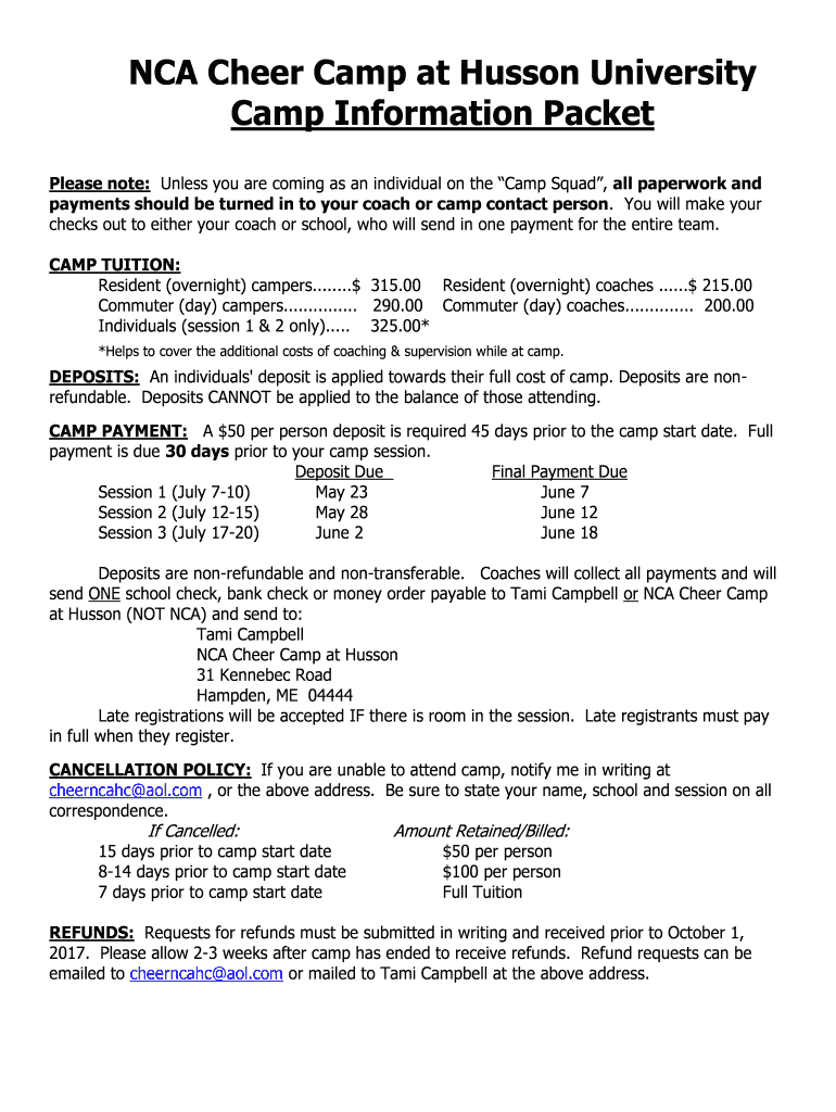 Fill out your nca cheer camp at online with pdfFiller!