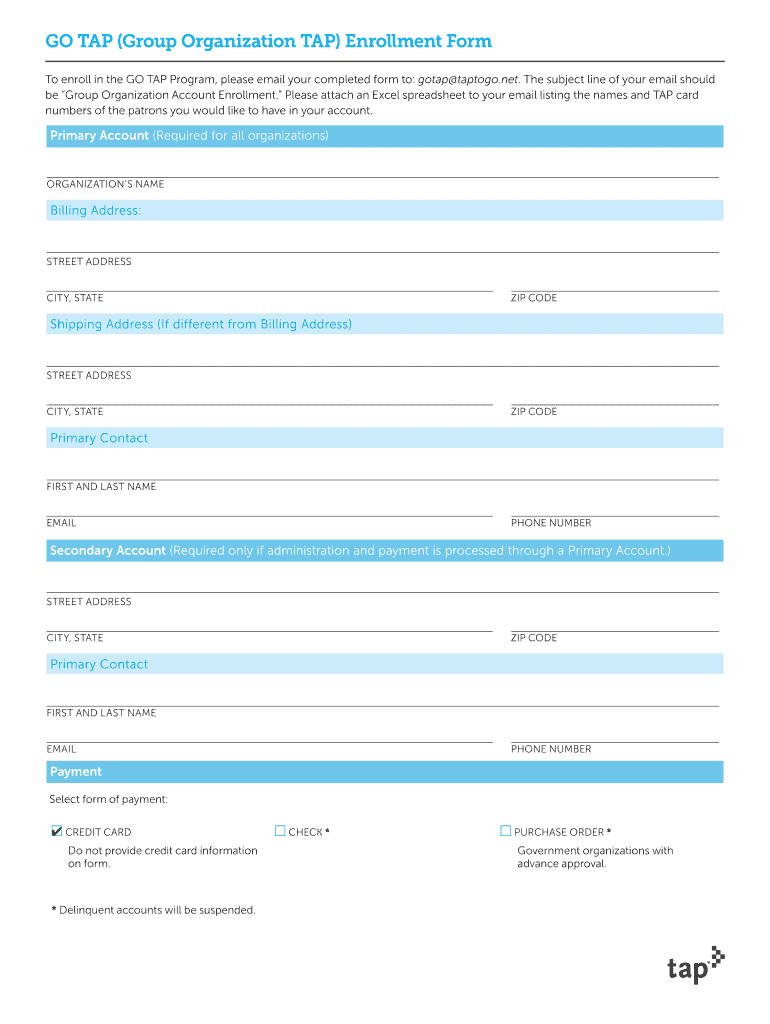 Get the free GO TAP (Group Organization TAP) Enrollment Form