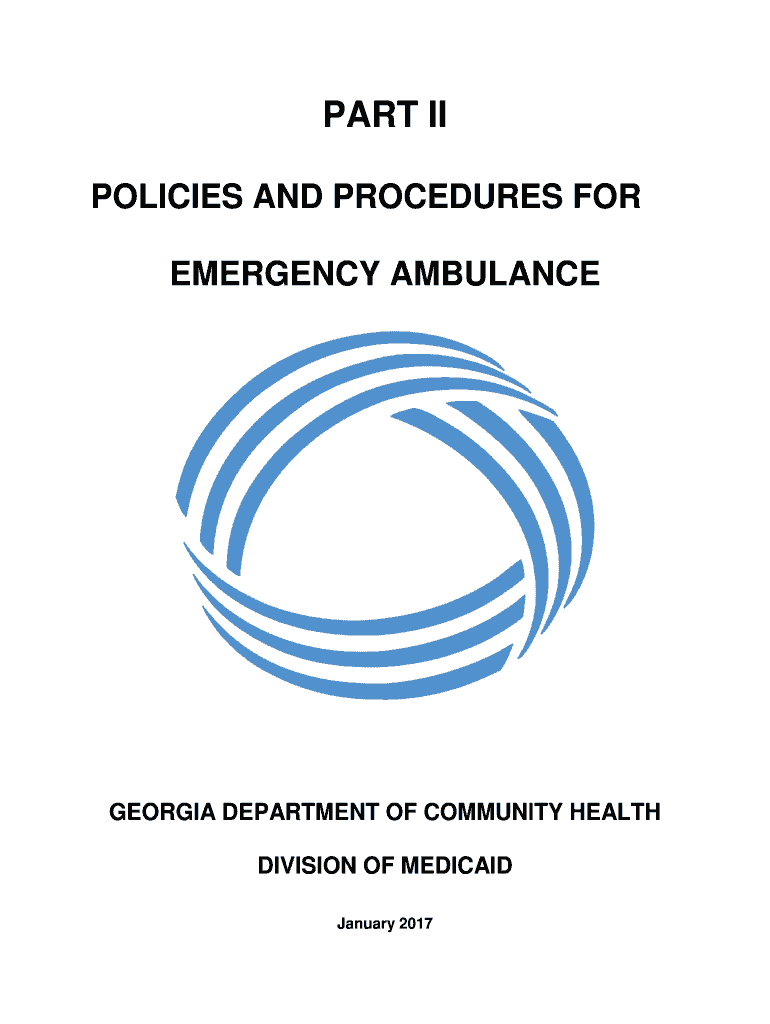 PART II POLICIES AND PROCEDURES FOR EMERGENCY AMBULANCE GEORGIA DEPARTMENT OF COMMUNITY HEALTH DIVISION OF MEDICAID January 2017 Policy Revisions Record Part II Policies and Procedures Manual for