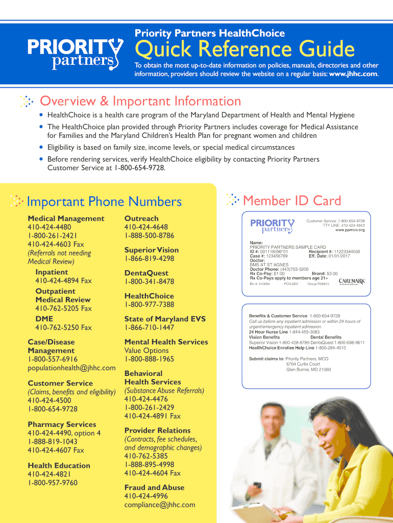 Priority Partners HealthChoice is a Managed Care Organization (MCO) that provides Medicaid health coverage in Maryland.