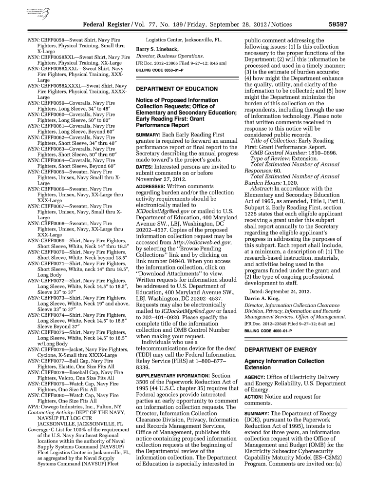 Robinson on DSK4SPTVN1PROD with NOTICES Federal Register / Vol. 77, No. 189 / Friday, September 28, 2012 / Notices NON: CBFF0058Sweat Shirt, Navy firefighters, Physical Training, Small through Large