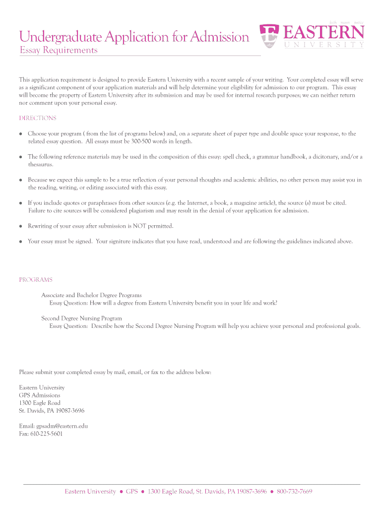 U N I V E R S I T Y19 25This application requirement is designed to provide Eastern University with a recent sample