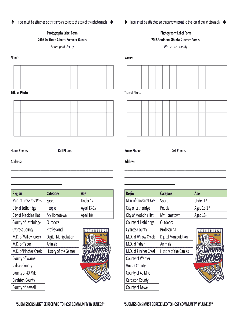 Label must be attached so that arrows point to the top of the photograph label must be attached so that arrows point to the top of the photograph Photography Label Form 2016 Southern Alberta Summer