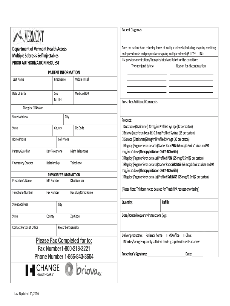 Patient Diagnosis: Does the patient have relapsing forms of multiple sclerosis (including relapsing remitting multiple sclerosis and progressive relapsing multiple sclerosis)? Yes No Department of