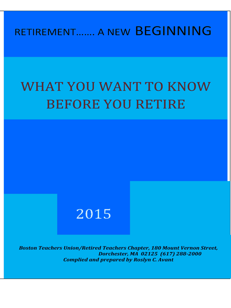RETIREMENT. A NEW BEGINNING MICROSOFT WHAT YOU WANT TO KNOW BEFORE YOU RETIRE 2015 Boston Teachers Union/Retired Teachers Chapter, 180 Mount Vernon Street, Dorchester, MA 02125 (617) 2882000 Complied