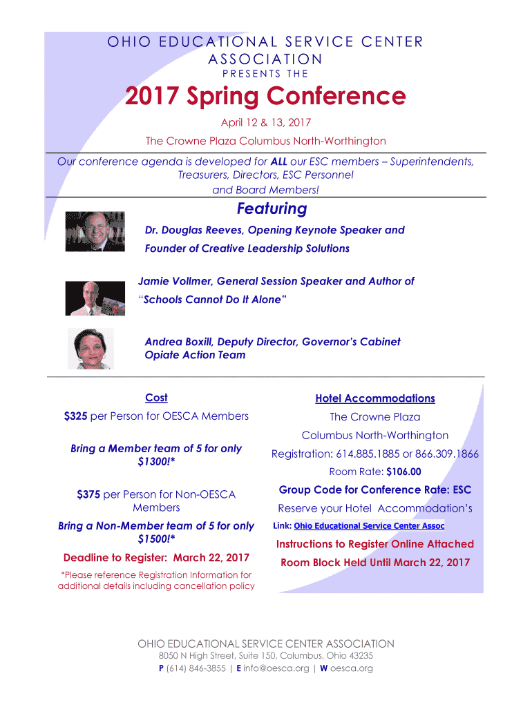 Get the free Attendee Registration Form - Ohio ESC Association - oesca