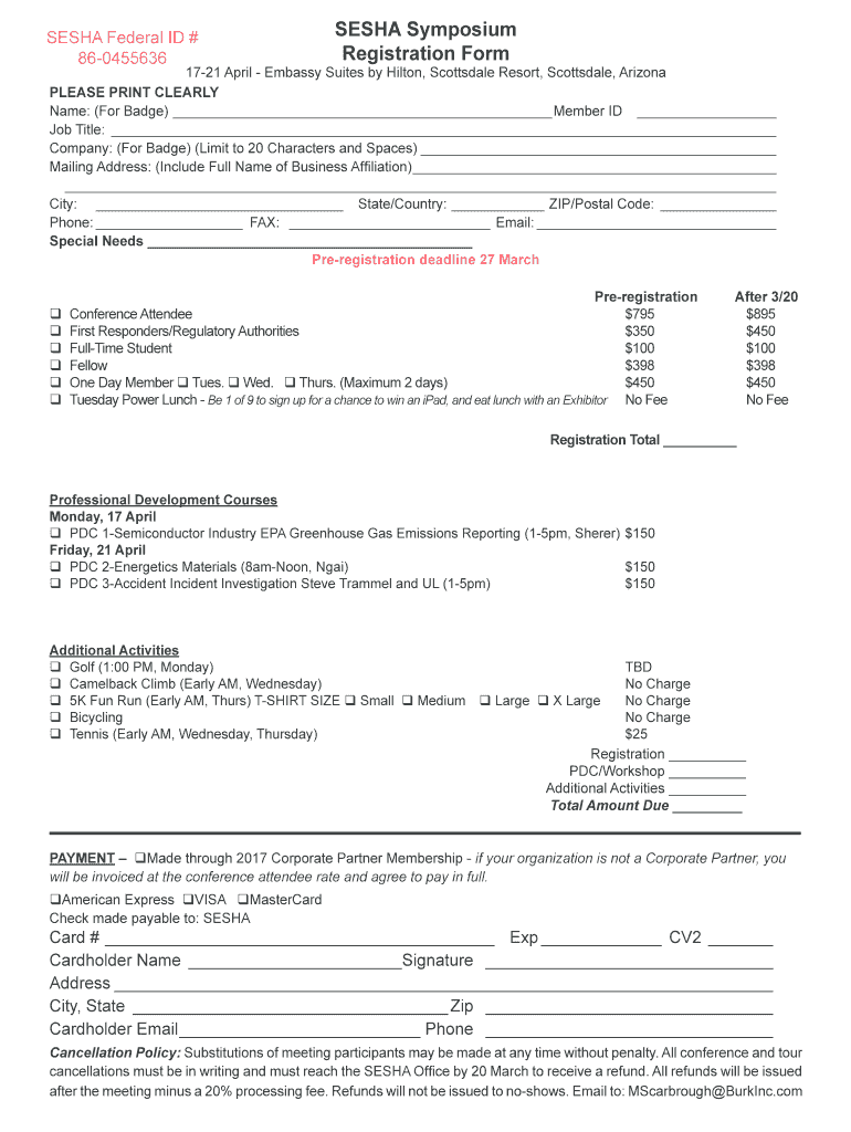 Get the free Printable Registration Form - sesha - seshaonline