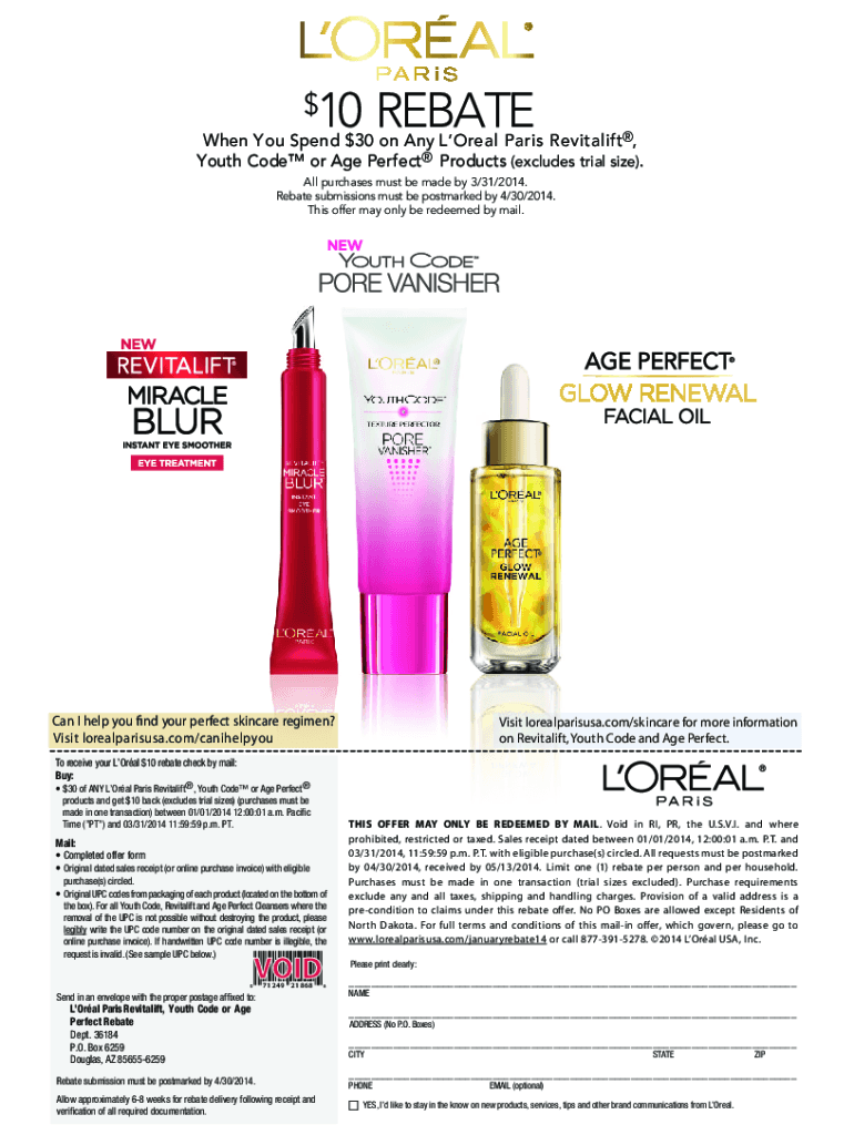 10 REBATE×When You Spend $30 on Any L'Oréal Paris Revitalize,