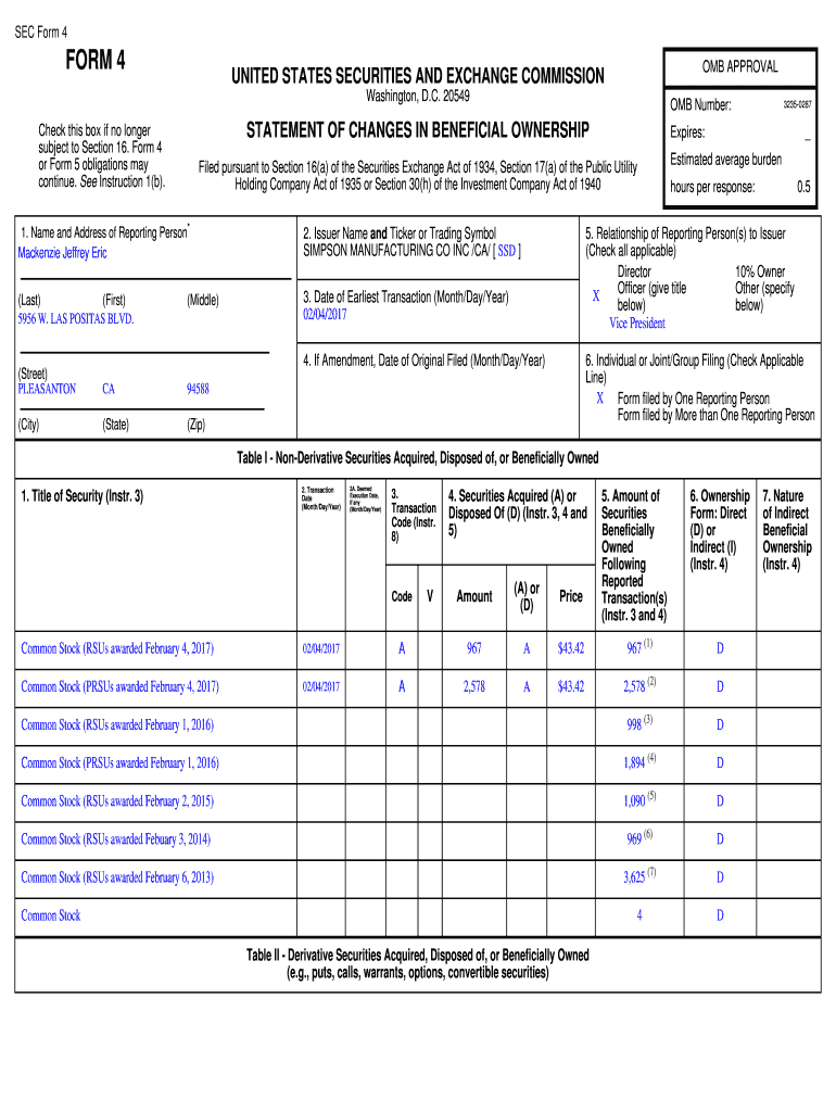 SEC Form 4 FORM 4 OMB APPROVAL UNITED STATES SECURITIES AND EXCHANGE COMMISSION Washington, D.C. 20549 OMB Number: STATEMENT OF CHANGES IN BENEFICIAL OWNERSHIP Check this box if no longer subject